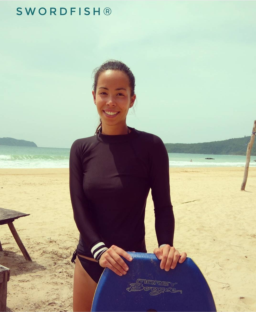 Inspired by Audrey Hepburn is our classic Black Zebra rashguard. Classy chic but functional for most water sport activities. Features long sleeves and matching bikini bottom. Made with UV cut fabric. Made in the Philippines.